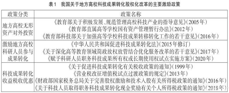 (二)地方高校科技成果转化股权化改革实践探索