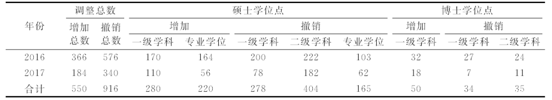 高校学科专业动态调整并不存在一个适合于所有国家的完美模式。无论是行政干预模式,还是市场调节,抑或是学术自治模式都具有各自的优劣性和适切性,相互之间存在一定的互补性。实践运行中,这三种模式常常是复杂交织、密切联系的矛盾综合体,共同对高校学科专业动态调整产生不同程度的综合性影响。改革开放四十年来,为促进高校学科专业的科学合理布局、更好地服务于经济社会发展需要,国家逐渐建立了学科专业定期评估制度与动态调整制度,显著改善了学科专业人才市场的结构性矛盾和国家多元化、多层次、多类型人才供给的短缺性矛盾。2015年《博士、硕士学位授权学科和专业学位授权类别动态调整办法》的颁发为促进学科专业建设资源的优化配置和高效使用起到了显著的作用,学位点动态调整的力度空前(见表1),而且明显从政策层面加大了对中西部高校学位点建设的支持力度。如“三角协调模型”所呈现的那样,学科专业动态调整事实上受到市场、行政和学术三重力量的共同驱动,调整过程具有高度复杂性和系统性,调整结果是三重力量博弈互动的产物。从改革开放四十年的历史变迁来看,我国高校学科专业动态调整在不同历史时期呈现出不同的历史特征和模式,这三重力量在其中所发挥的作用也有所差异,呈现出不同的实践问题和困境。